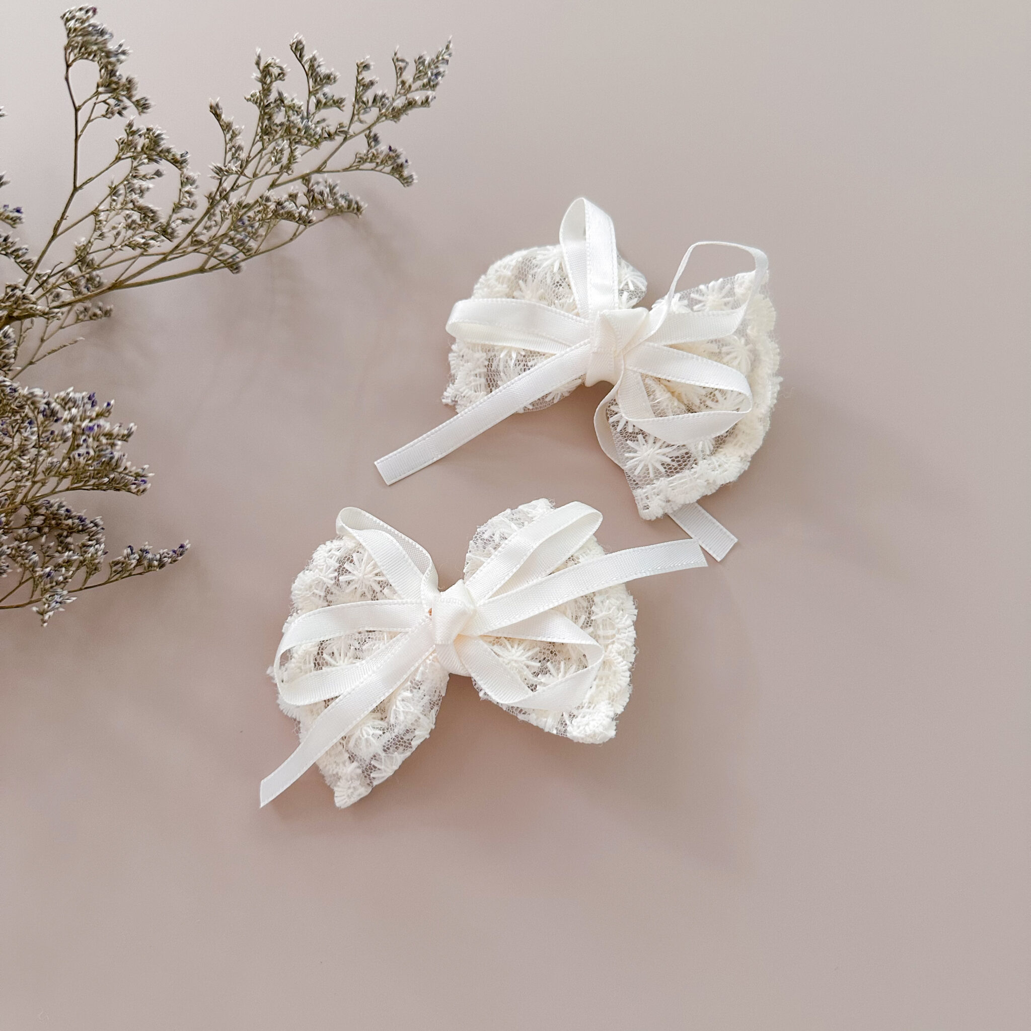 Hermosas hebillas en encaje, perfectas para complementar los Outfit de tu bebé.