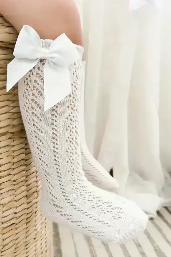 El dúo perfecto para completar el Outfit de tu bebe, medias en algodón con hermoso lazo en encaje a juego con diadema ultra suave, no marca la cabecita de tu bebe. Talla única de 0-6 meses.
