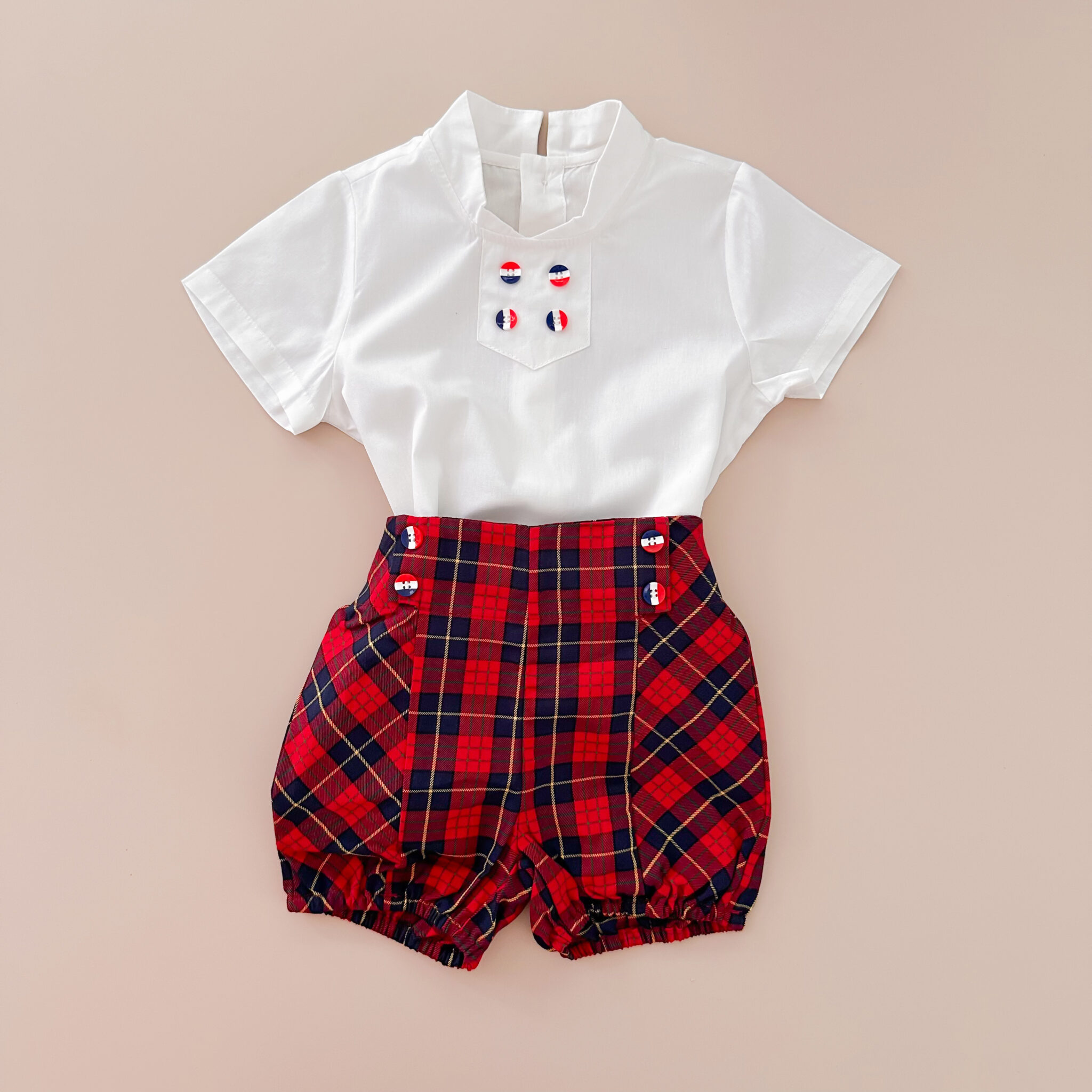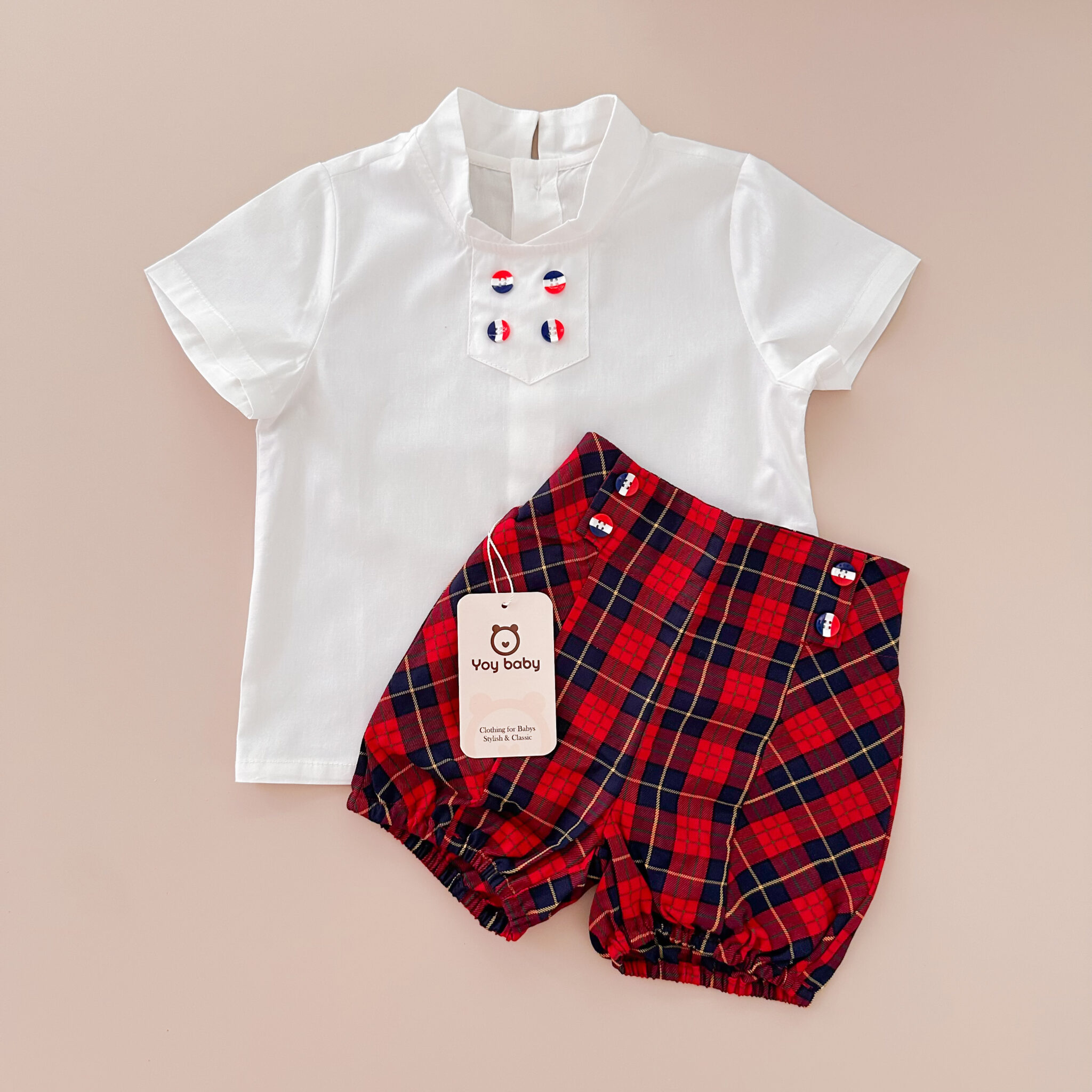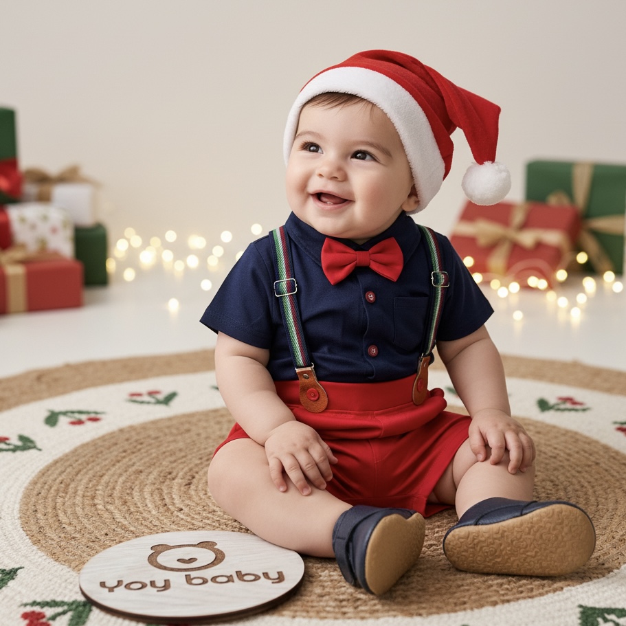 – Espectacular Set de alta calidad con detalles en botones a juego y cuello Mao, colores de temporada. Un encantador diseño para que tu bebe luzca perfecto esta temporada navideña.