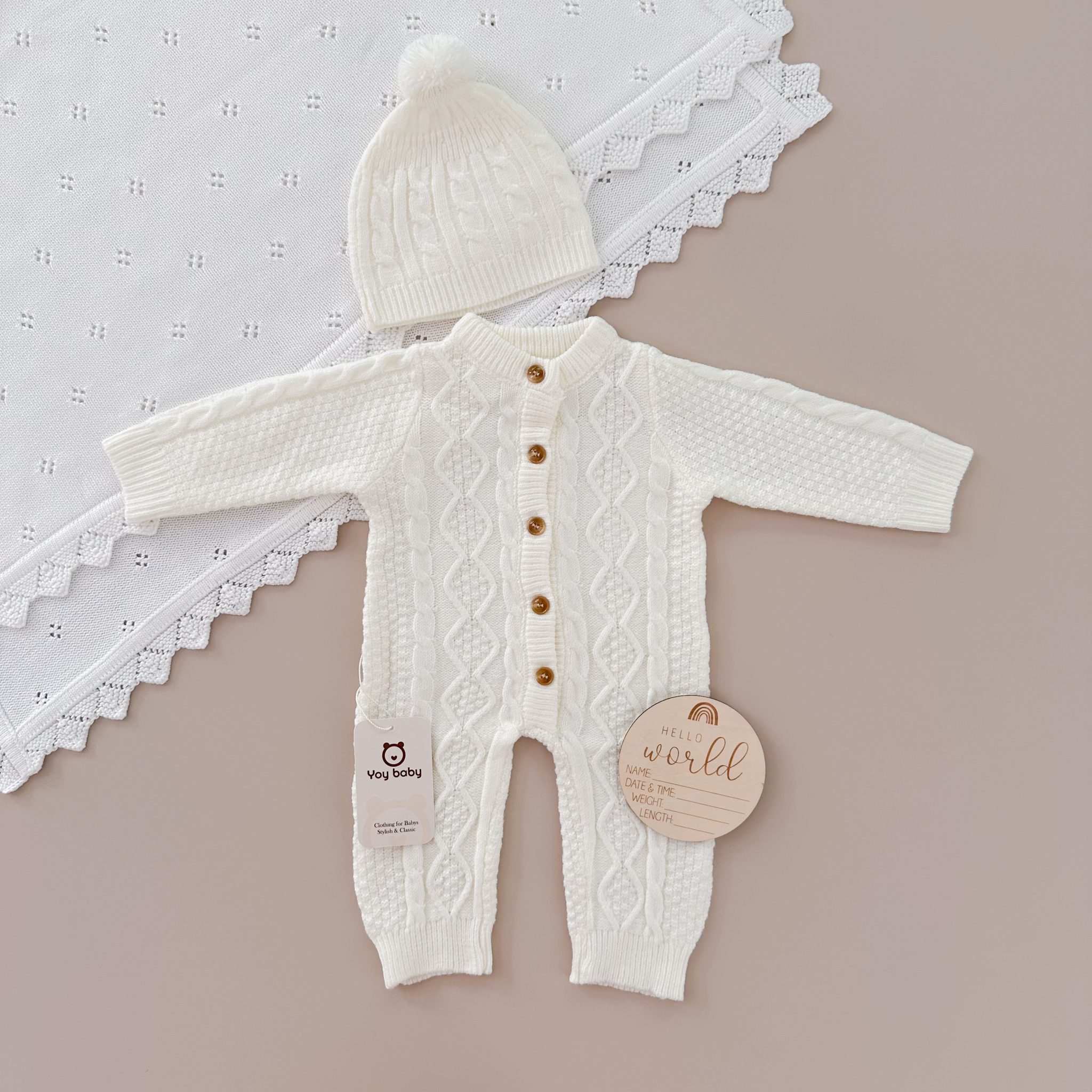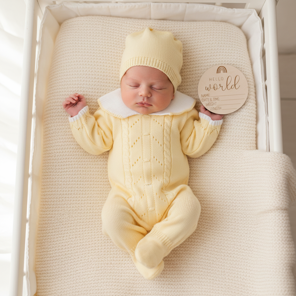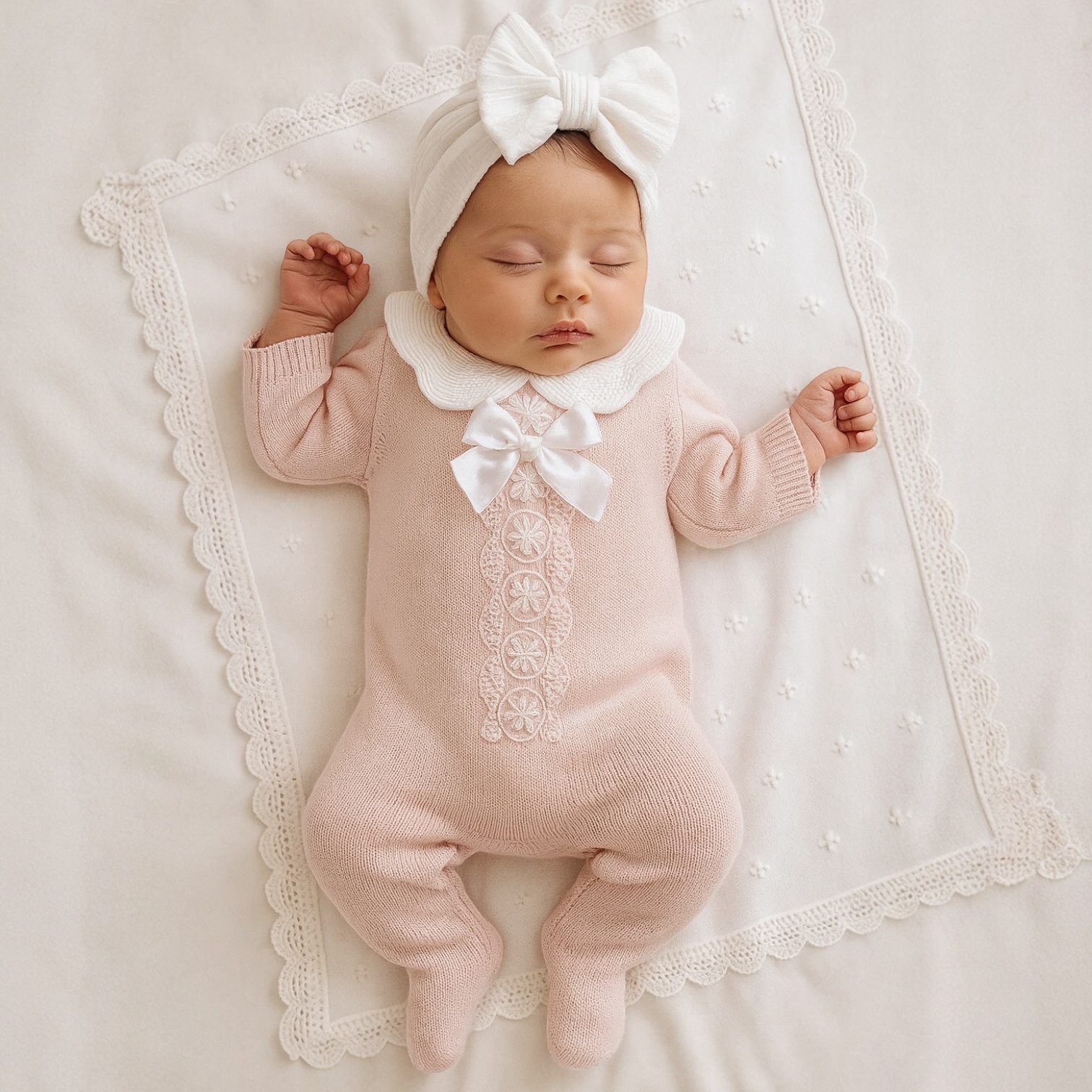 – Encantadora braga tejida y bordada con «Mi primera Navidad» en tejido de algodon y detalles en bolero en manga, incluye romper en algodon con cuello bolero, el Outfit perfecto para tu recien nacida en esta navidad. Disponible solo en talla 0-3 meses.