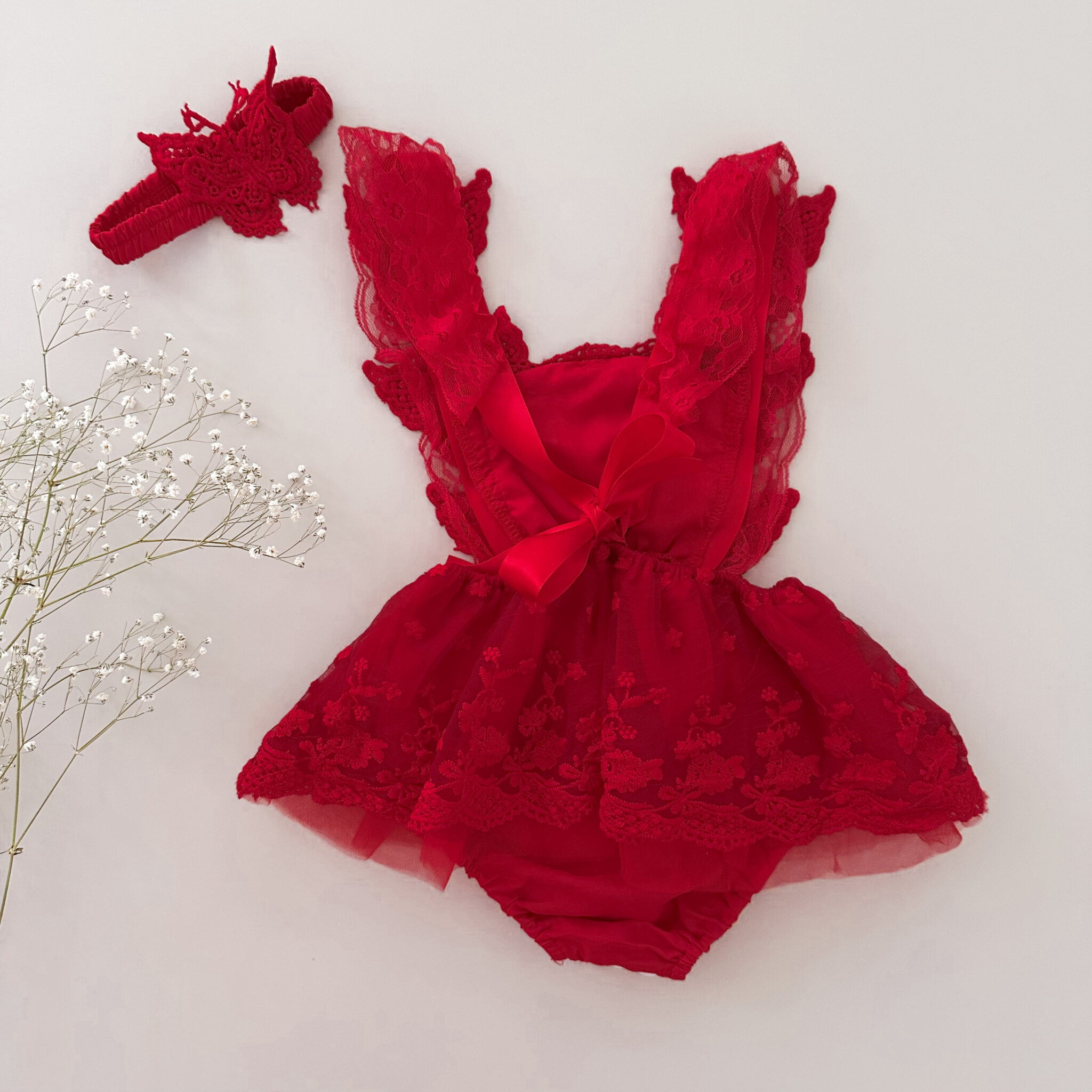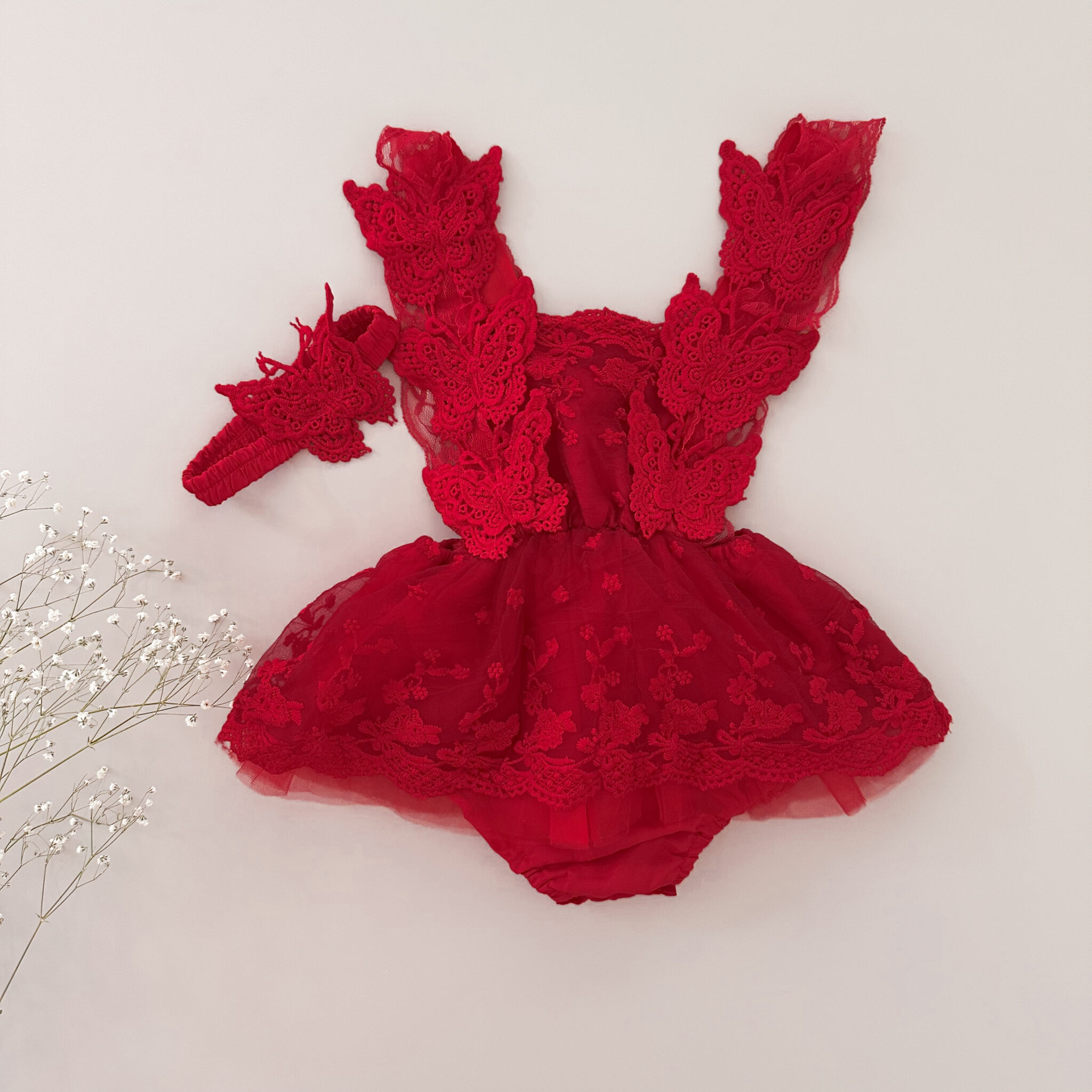 – Espectacular vestido body color rojo con detalles en alta calidad, bordados en mariposa y flores en tendencia. Perfecto para que tu bebe luzca perfecta esta temporada navideña.