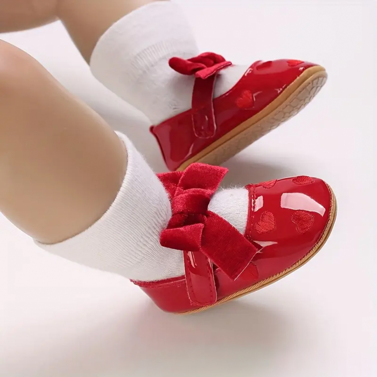 Hermoso Zapato ergonómico para bebe, forrados internamente en algodón para prevenir lesiones por rose, suela suave y flexible que respetan su marcha, encantador diseño en corazones.